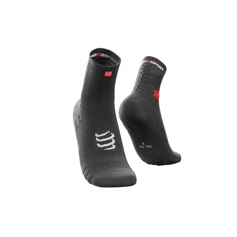 Toujours plus performante, la nouvelle paire de chaussette Compressport Pro Racing V3.0 Run High vous apporte une protection et un confort optimal lors de vos sessions de course à pied. Conçus avec des zones de protection stratégiques, votre talon, tendon d’Achille et avant pied sont parés à toutes vos sorties running. Les chocs sont absorbés pour une réduction des impacts à chaque foulée.